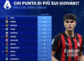 Il club nerazzurro guida la classifica di chi punta di più sui giovani secondo i dati di Transfermarkt: 12 giocatori nati dal 2002 in...