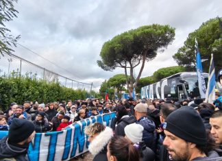 Da queste parti una volta si impediva al pullman dei giocatori di partite. Oggi è tutta un'altra musica. Grande abbraccio dei tifosi alla squadra...