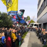 Attesa all’AC Hotel e applausi alla partenza. La squadra parte per la Sardegna col peso della classifica e l’energia dei tifosi