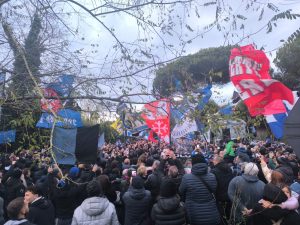 Al termine della rifinitura, prima della partenza per Firenze, la squadra ha ricevuto una sorpresa da tanti tifosi che, senza annunci, sono andati a sostenere i giocatori. Le immagini di seguito sono di repertorio. “Fatelo per noi” lo striscione campeggiato a San Piero.