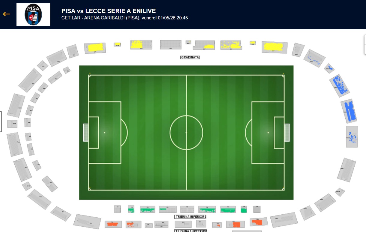 Tolta la Curva Nord, dove però alcuni biglietti sono in vendita comunque sul sistema ticketag, la prevendita tra Pisa e Lecce sta andando a rilento per ovvi motivi.