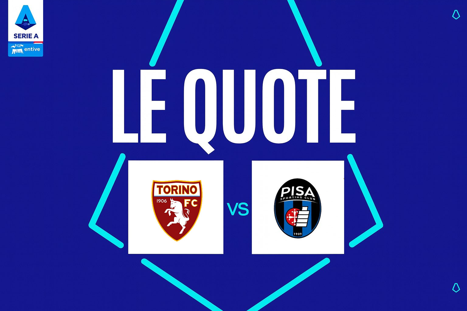 Le principali agenzie di scommesse vedono il Torino favorito nel match di domenica pomeriggio contro il Pisa. Le quote per la vittoria granata oscillano tra 1.88 e 1.99, con Netwin e Betsson che propongono la più alta a 1.99.